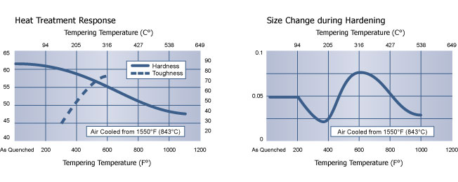 為了最大限度地減小橫截面內(nèi)部應(yīng)力大于6英寸(152.4 mm)并提高熱處理后EDM的工具的穩(wěn)定性,強(qiáng)烈建議在回火溫度下浸泡4到6小時。